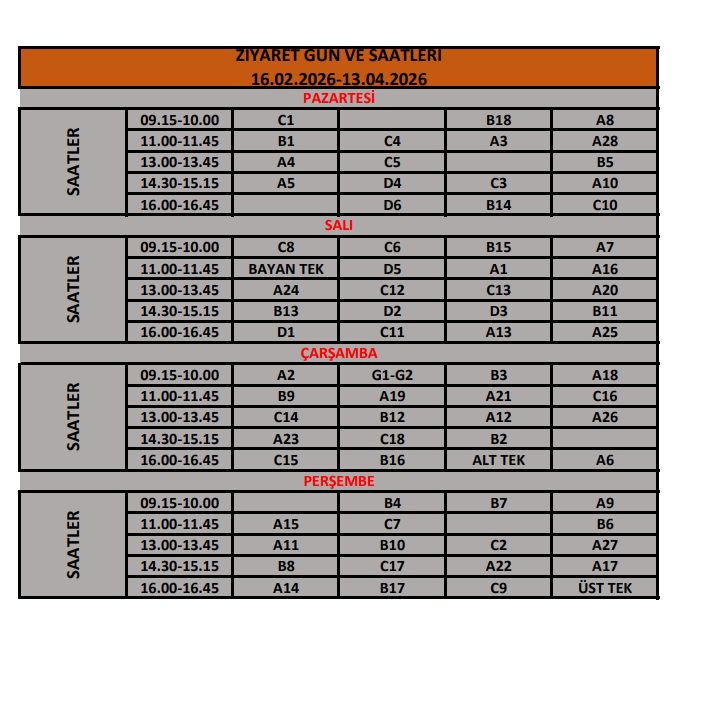 ZİYARET GÜN VE SAATLERİ